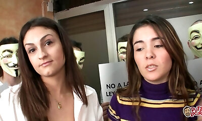 Slutty brunette with quite nice tits gets mouthfucked by lots of studs