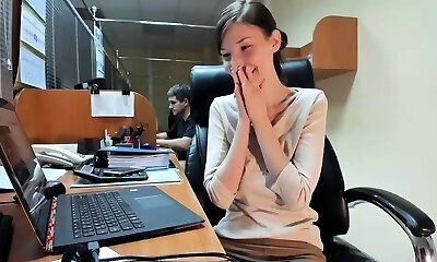 Chubby English nympho Ashley Rider rubs her xxl pussy in the office